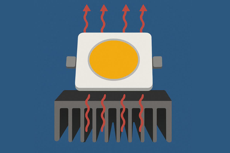 عملکرد بهینهی LEDها به شدت به دمای کاری آنها بستگی دارد. هر چیپ LED دارای یک مقدار دمای مجاز برای اتصال نیمههادی (Junction Temperature) است. هیتسینگ مناسب، این دما را به سطحی ایمن منتقل میکند. زمانی که دمای اتصال از این حد فراتر رود: